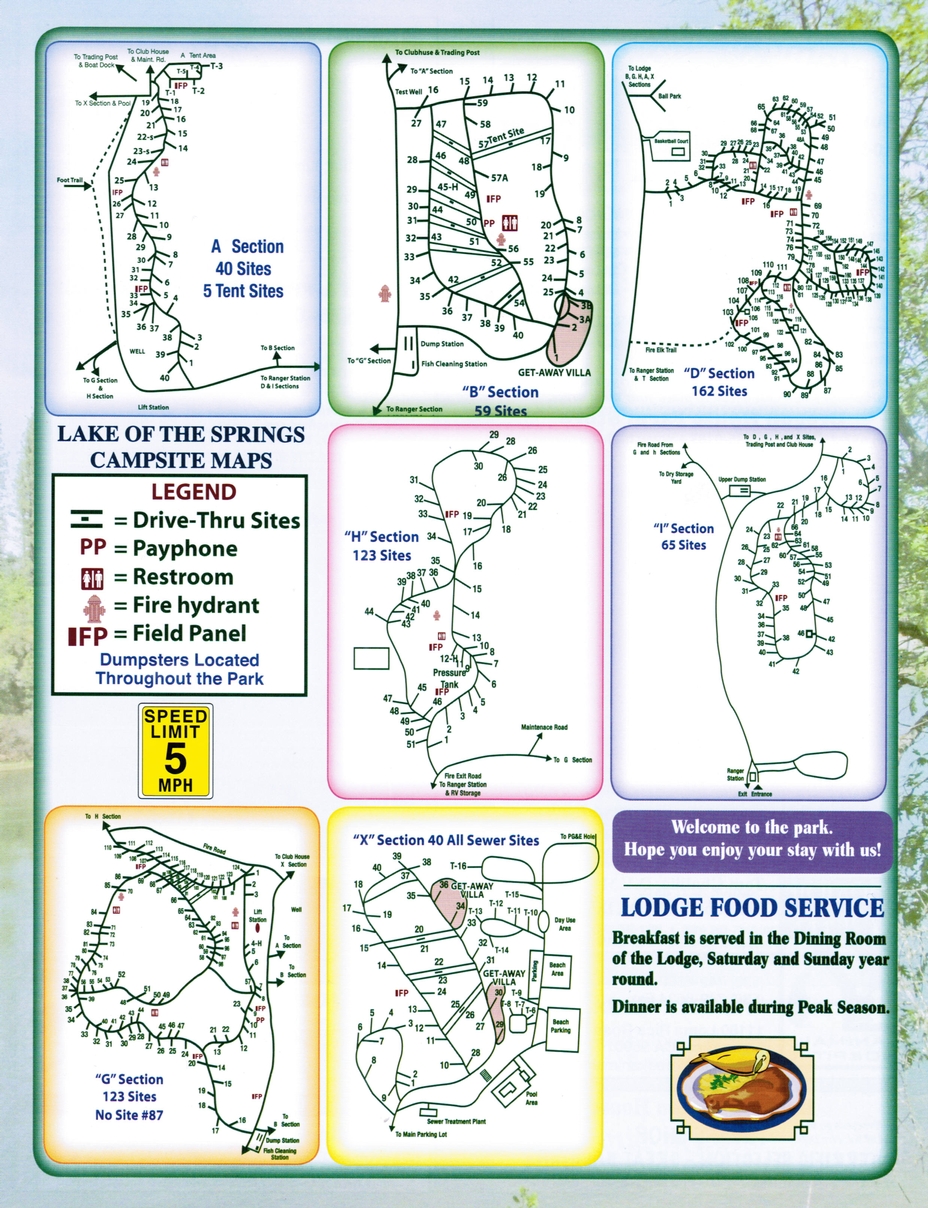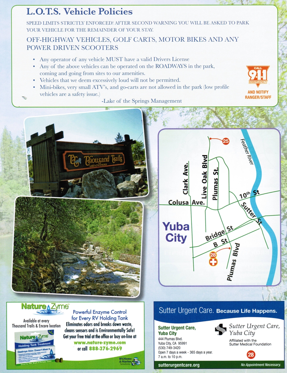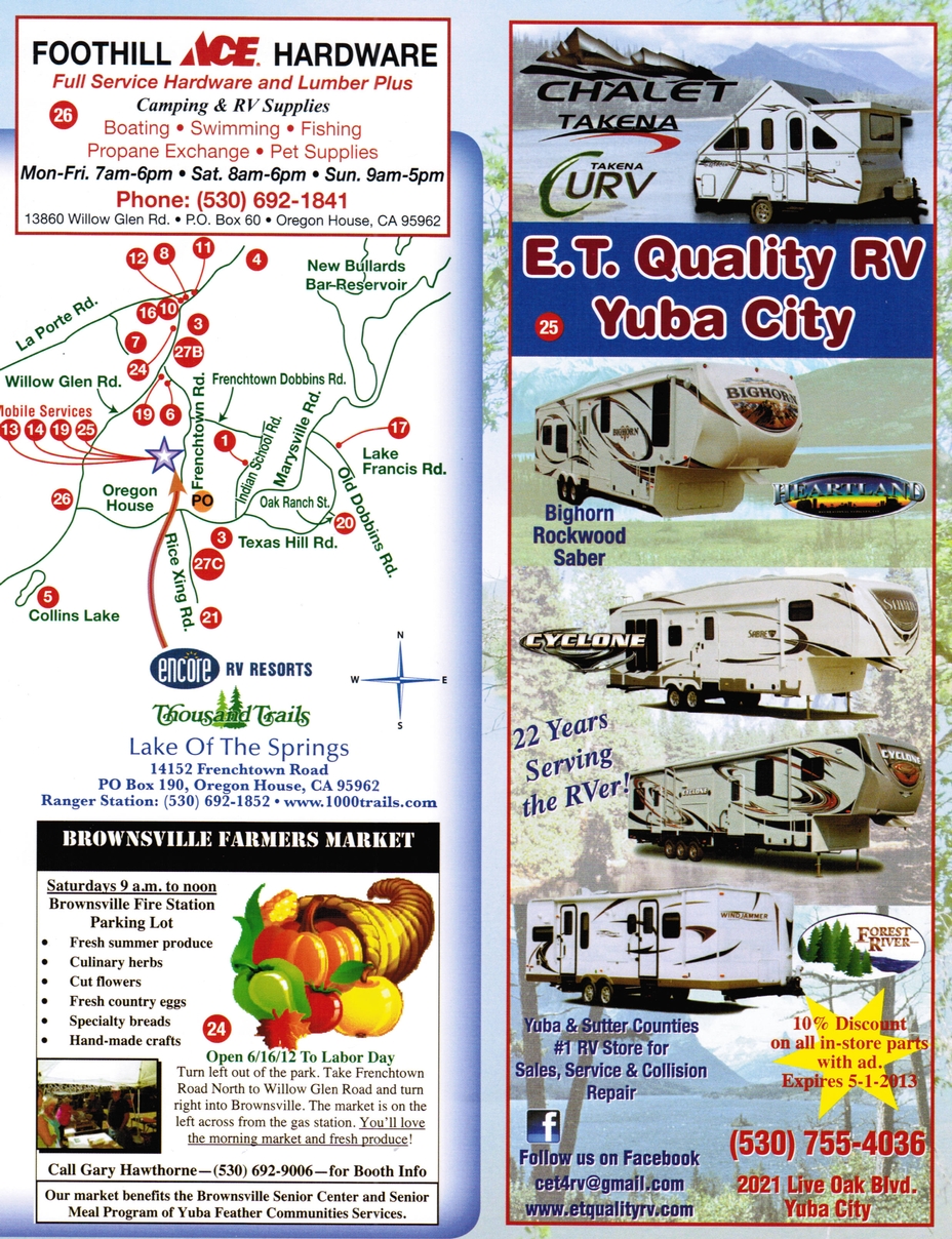 Here is a recent sample of one of Trails End Publications fantastic campground maps. This is an outstanding value for the merchants who advertise because it answers the "Where do I go for (just about anything) around here?" which is constantly asked by the campground's thousands of visitors!